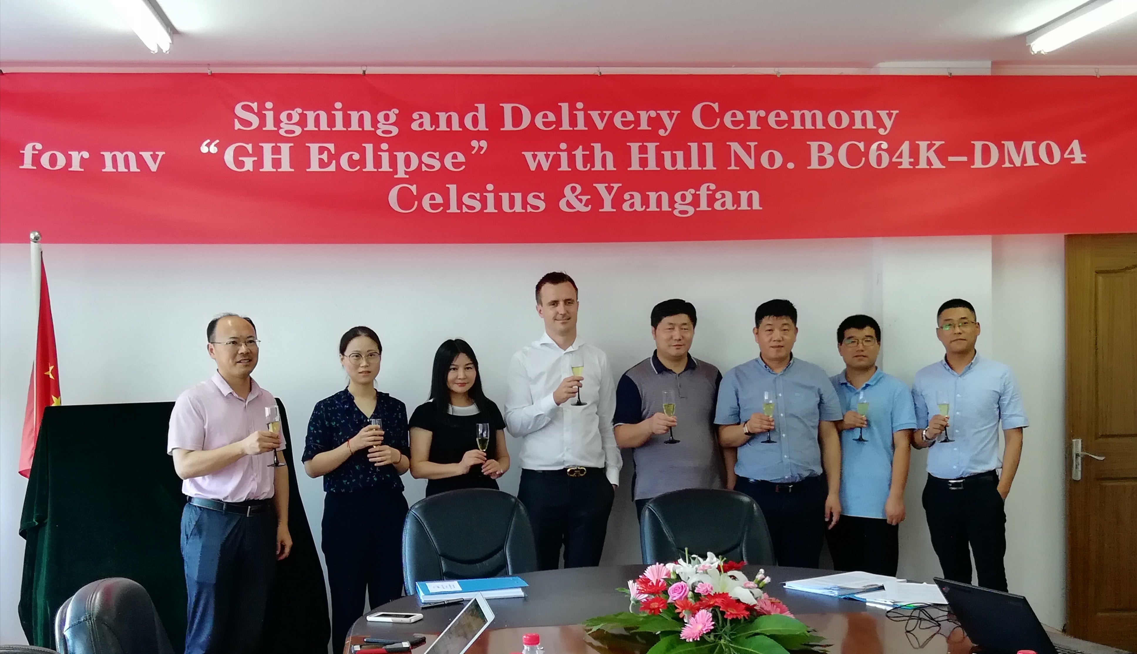 2019年7月29日下午,揚帆集團下屬舟山大神洲造船有限公司一艘64000噸散貨船正式簽字交船。