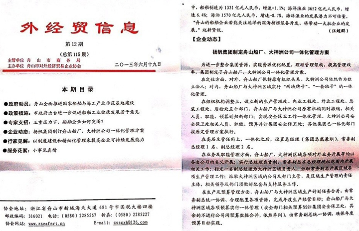 《外經貿信息》2013第12期:揚帆集團制定舟山船